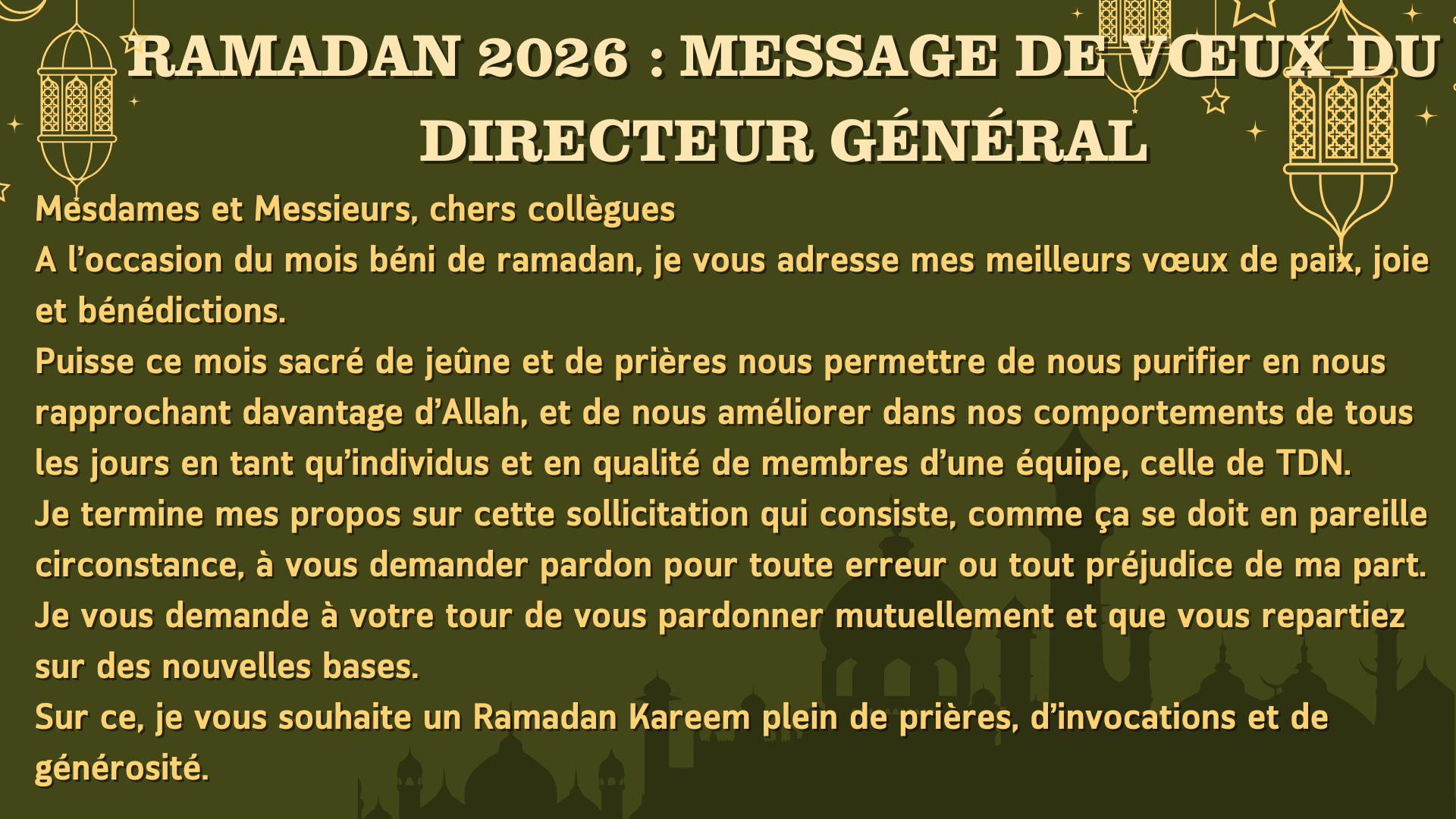 Message de vœux du DG à l’occasion de la fête de ramadan